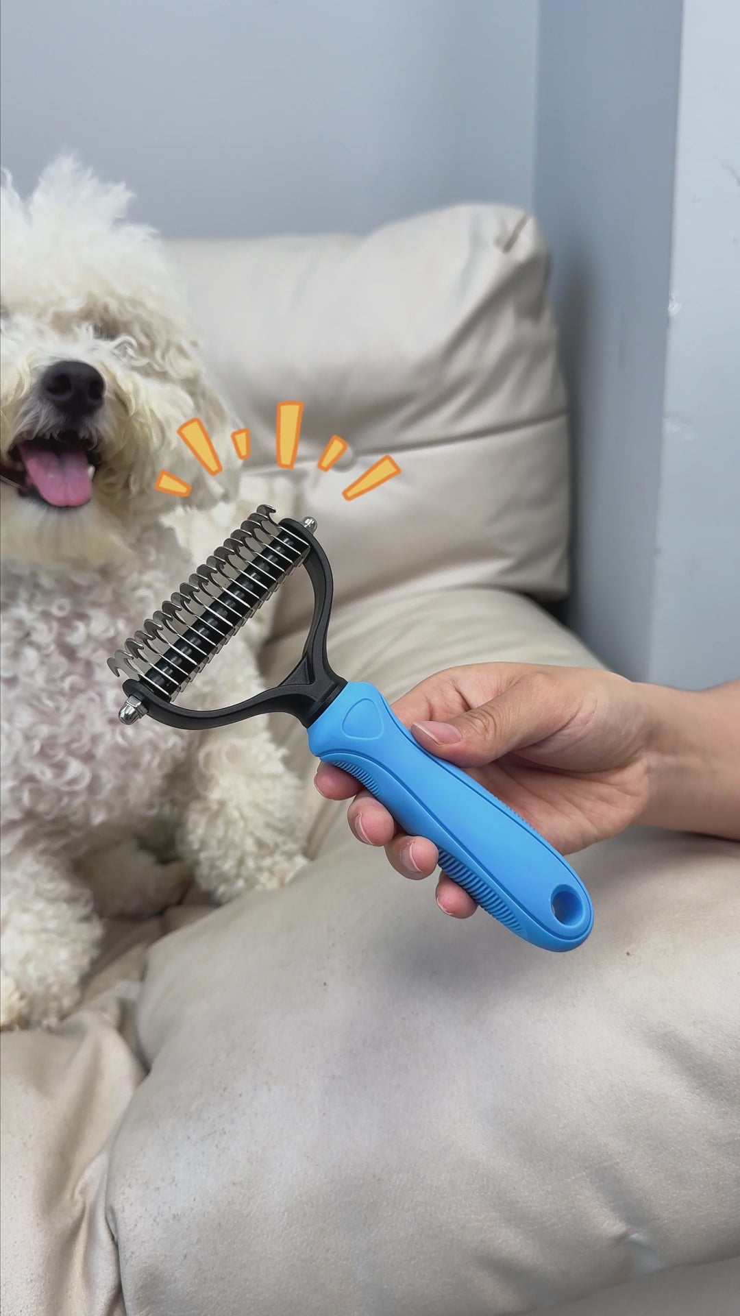 - DUAL-SIDED DESIGN: Our grooming brush is perfect for dematting and deshedding your pet's coat! With a dual-sided design, use the 9-teeth side to tackle stubborn mats and tangles and the 17-teeth deshedding tool side to thin out your pet's fur. Gently desheds and removes loose hair and eliminates tangles, knots, dander, and trapped dirt keeping your dog looking their best.